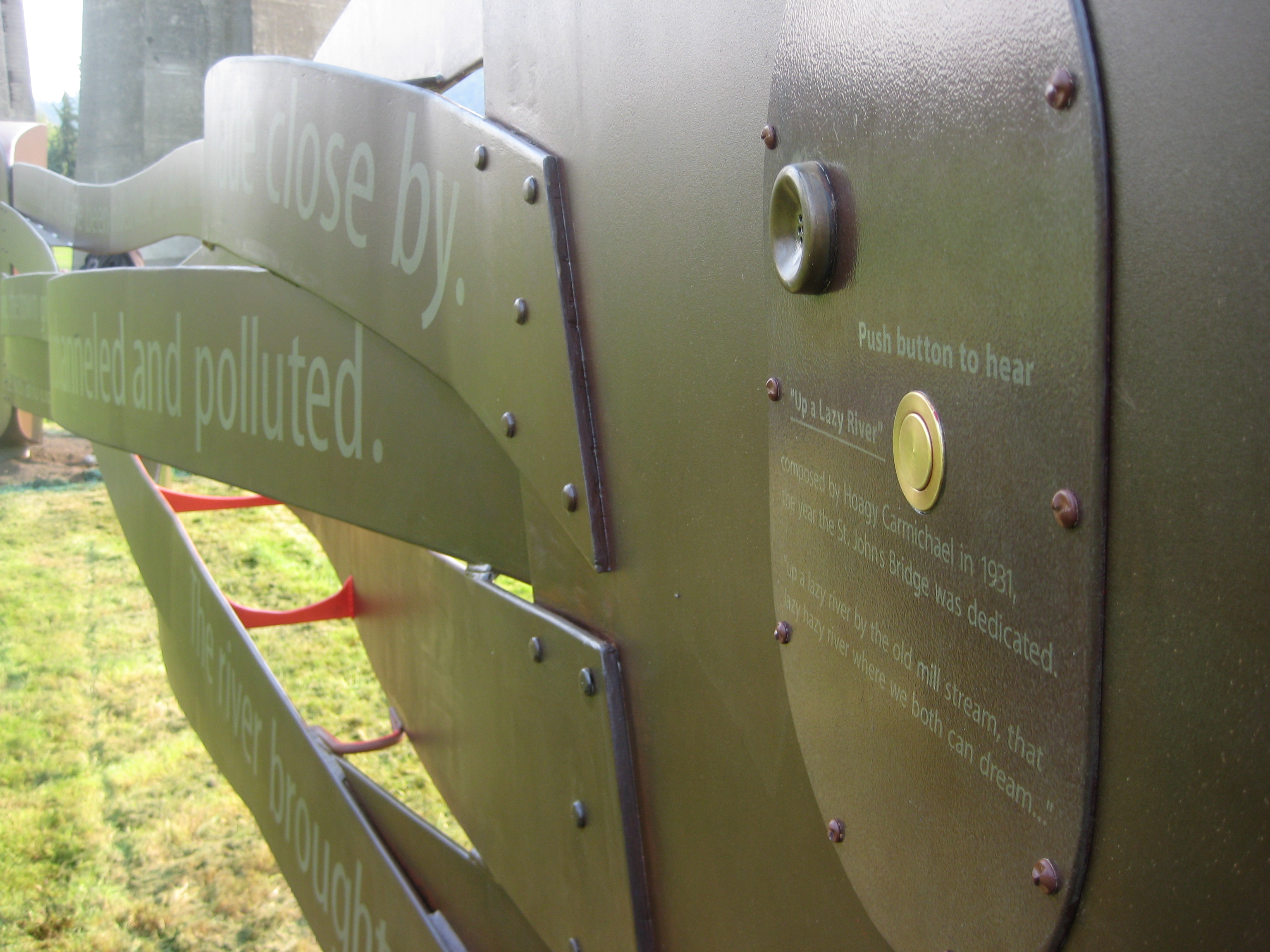 Drawing on the River is a site-specific large scale public art project by artist Donald Fels installed in Cathedral Park on the Willamette River near St. Johns, Oregon. I created two mechanical push button music boxes for this project. More information on Drawing on the River can be found HERE.